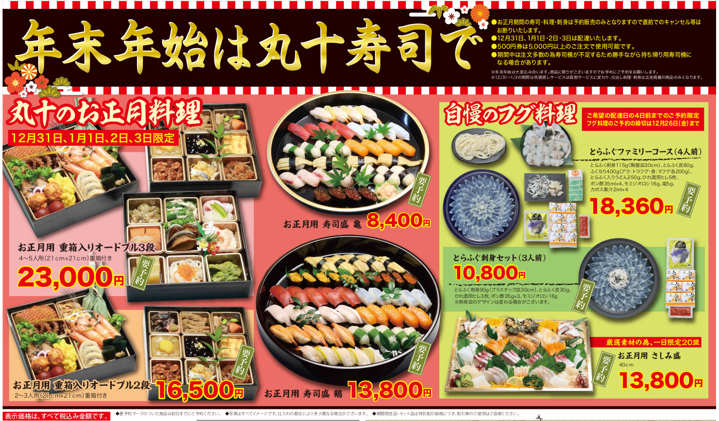 基本を忠実に守った正統派のにぎり寿司や豊富な仕出しメニューが揃っています。ご家族でのお祝い事や記念日、大切な方の接待など、どんなご利用にも対応が可能です。一家団らんに笑顔を届けてくれる「丸十寿司」の味を、是非一度、お楽しみください。